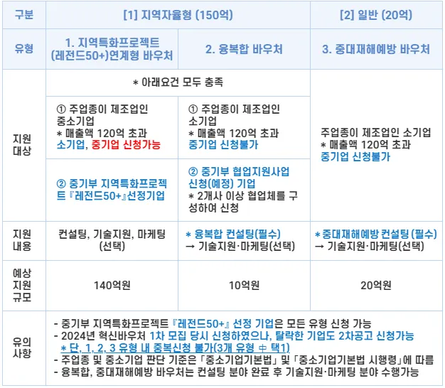 지원을 원하는 내용과 기업 규모에 알맞은 유형을 선택하셔서 신청하시면 됩니다.