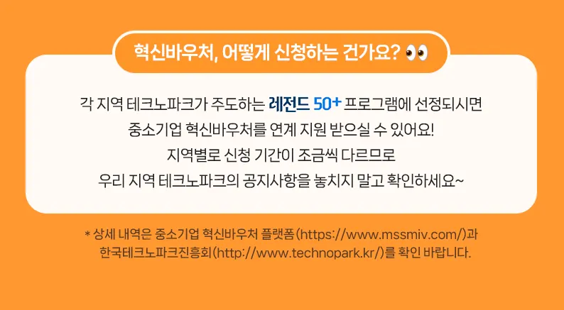이번 혁신바우처는 지역특화 프로젝트 ‘레전드 50+’ 프로그램과 연계되어 진행됩니다.