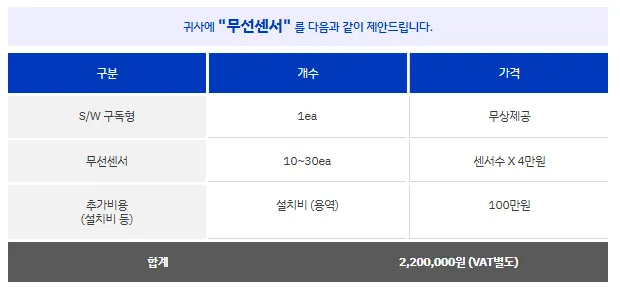 해당 페이지를 통해 현장의 특성에 어울리는 센서를 추천받을 수 있고,