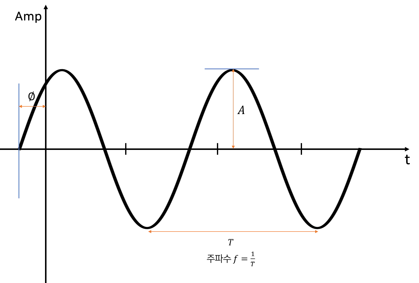 크기(amplitude, )는 진폭, 진동 크기를 의미합니다.