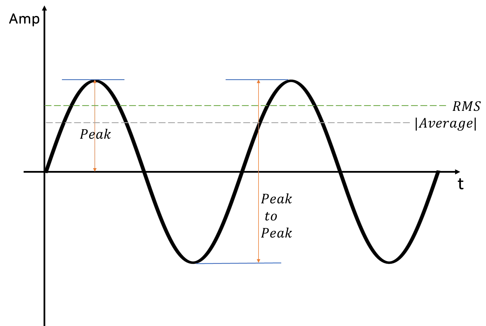 보통 RMS는 Sine Wave를 기준으로 아래와 같이 계산할 수 있습니다.