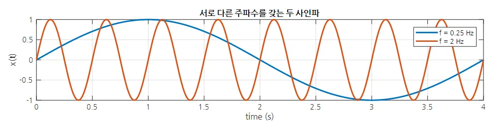 위의 그래프를 보면, 4초에 1회의 주기를 가지며, 1Hz는 1초에 0.5회의 주기를 가집니다.