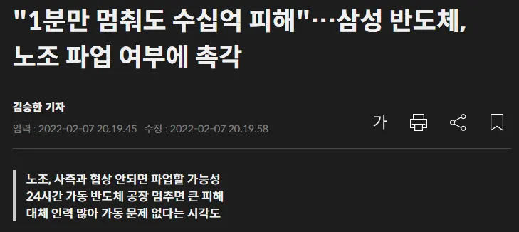 삼성전자 평택 사업장은 2019년 28분간 멈춰 500억 이상의 손해를 입었습니다.